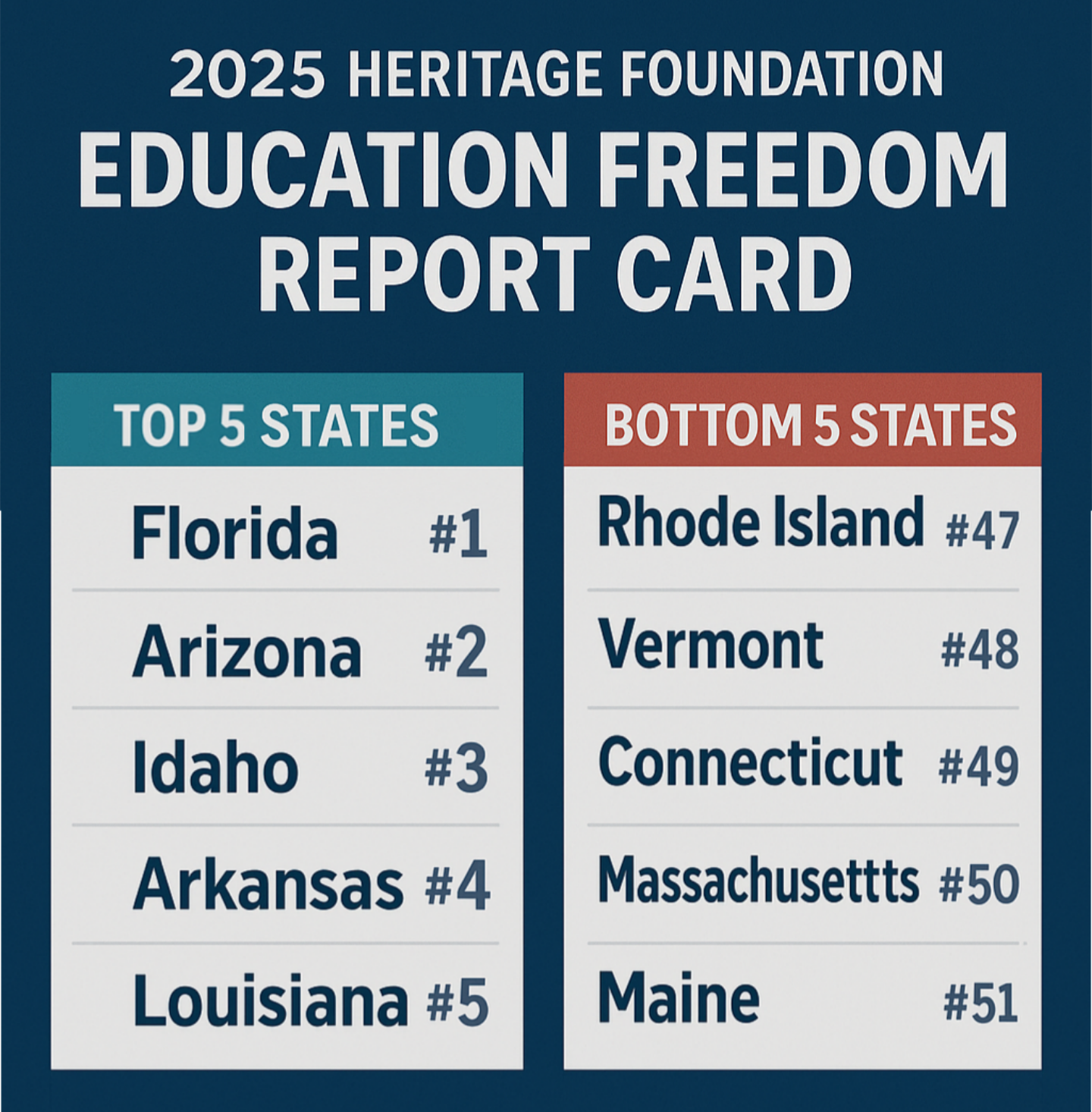 Heritage Foundation has released their 2025 Education Freedom Report Card.