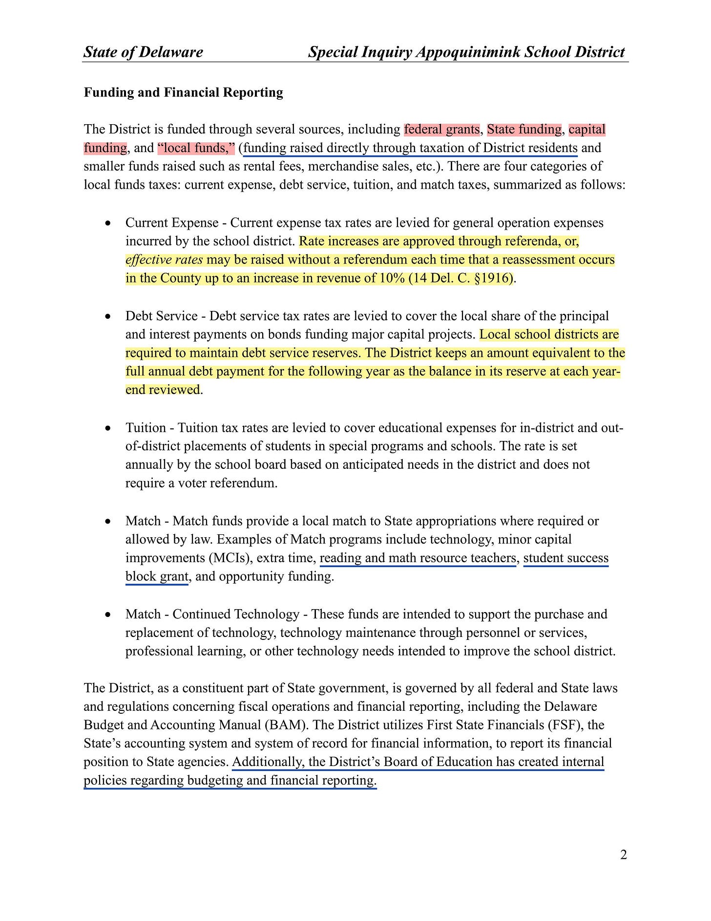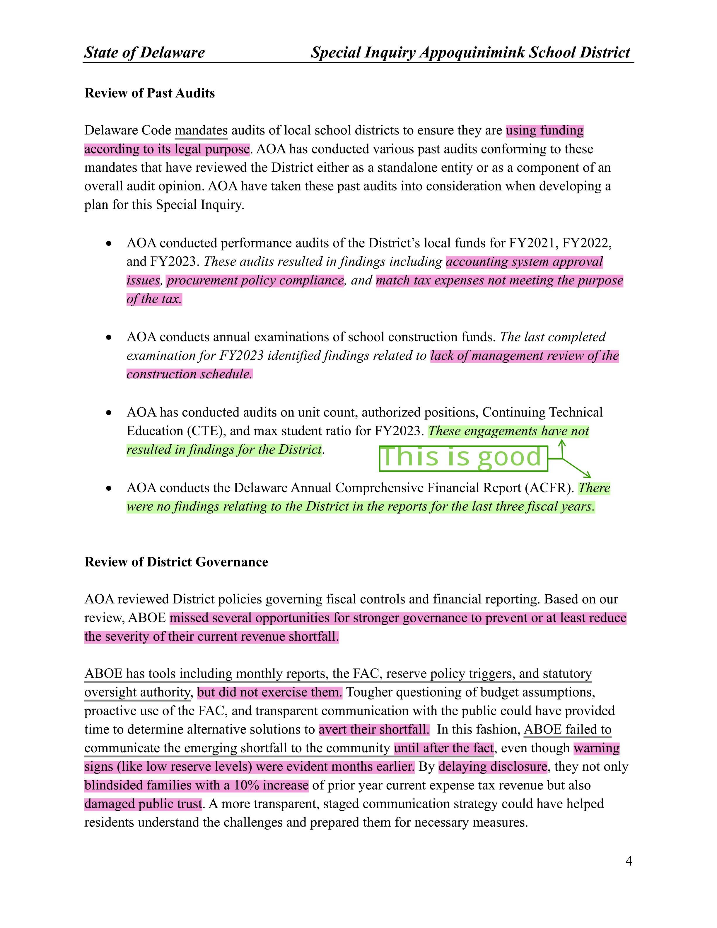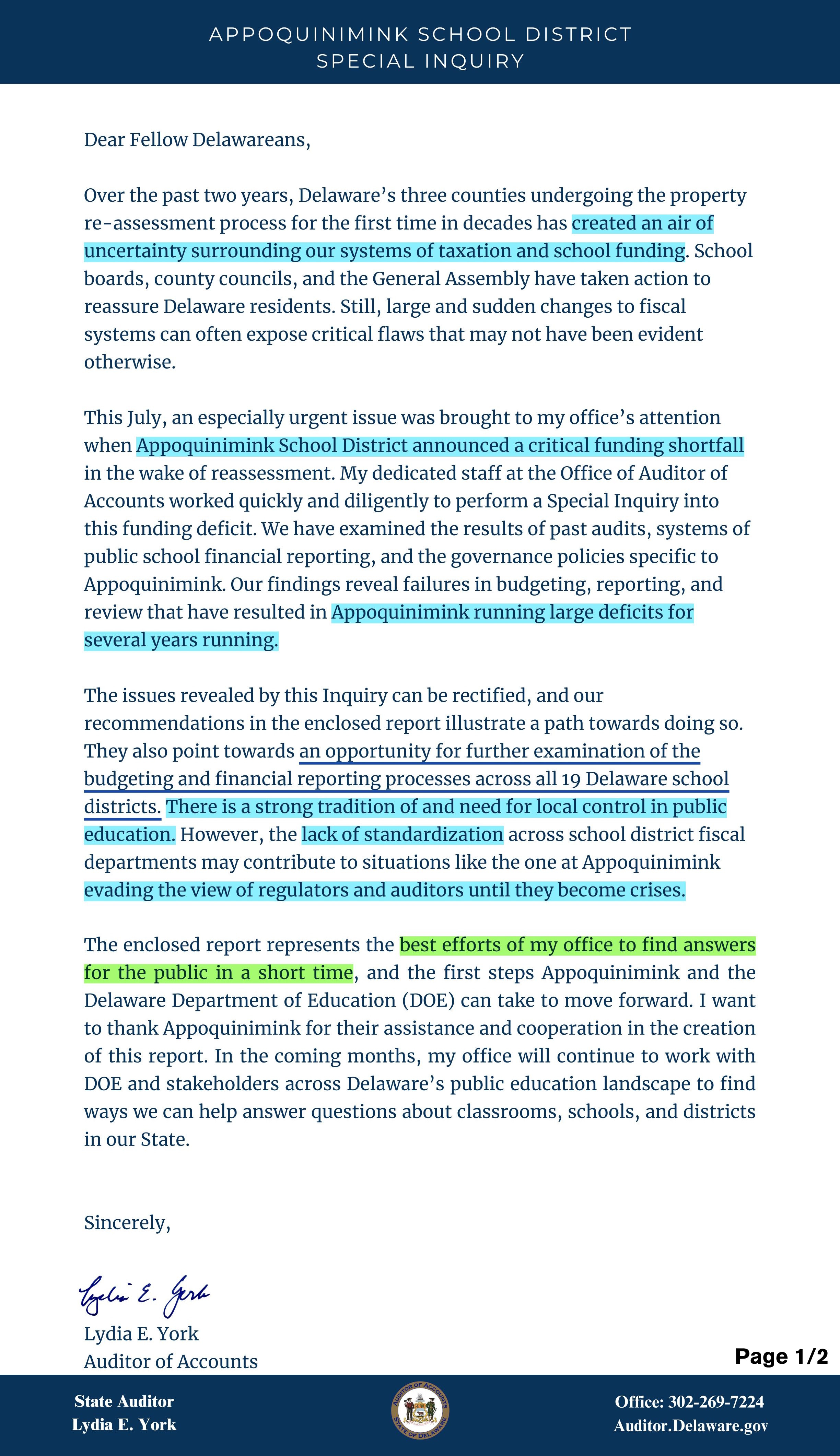 🚨AUDITOR’S REPORT ON APPOQUINIMINK SCHOOL DISTRICT