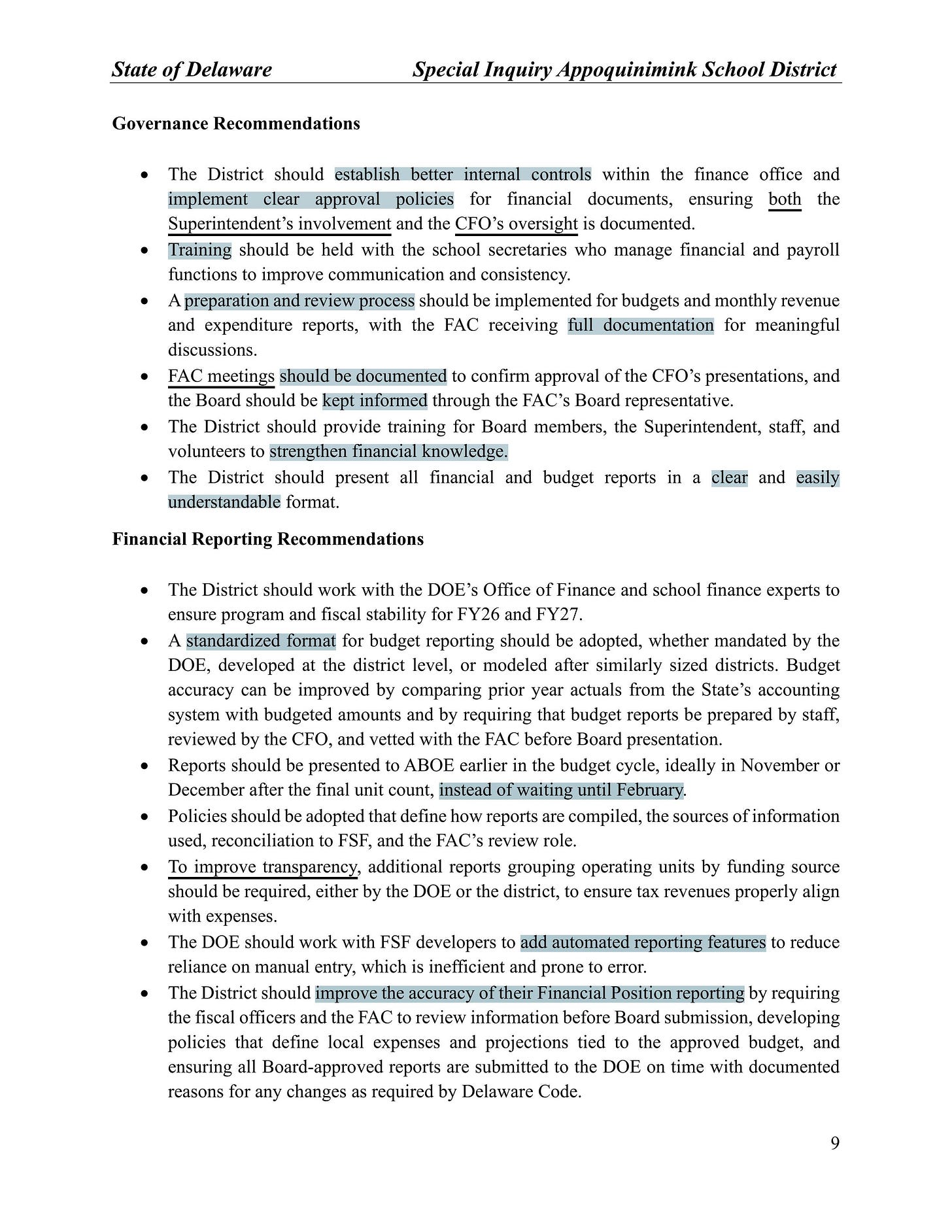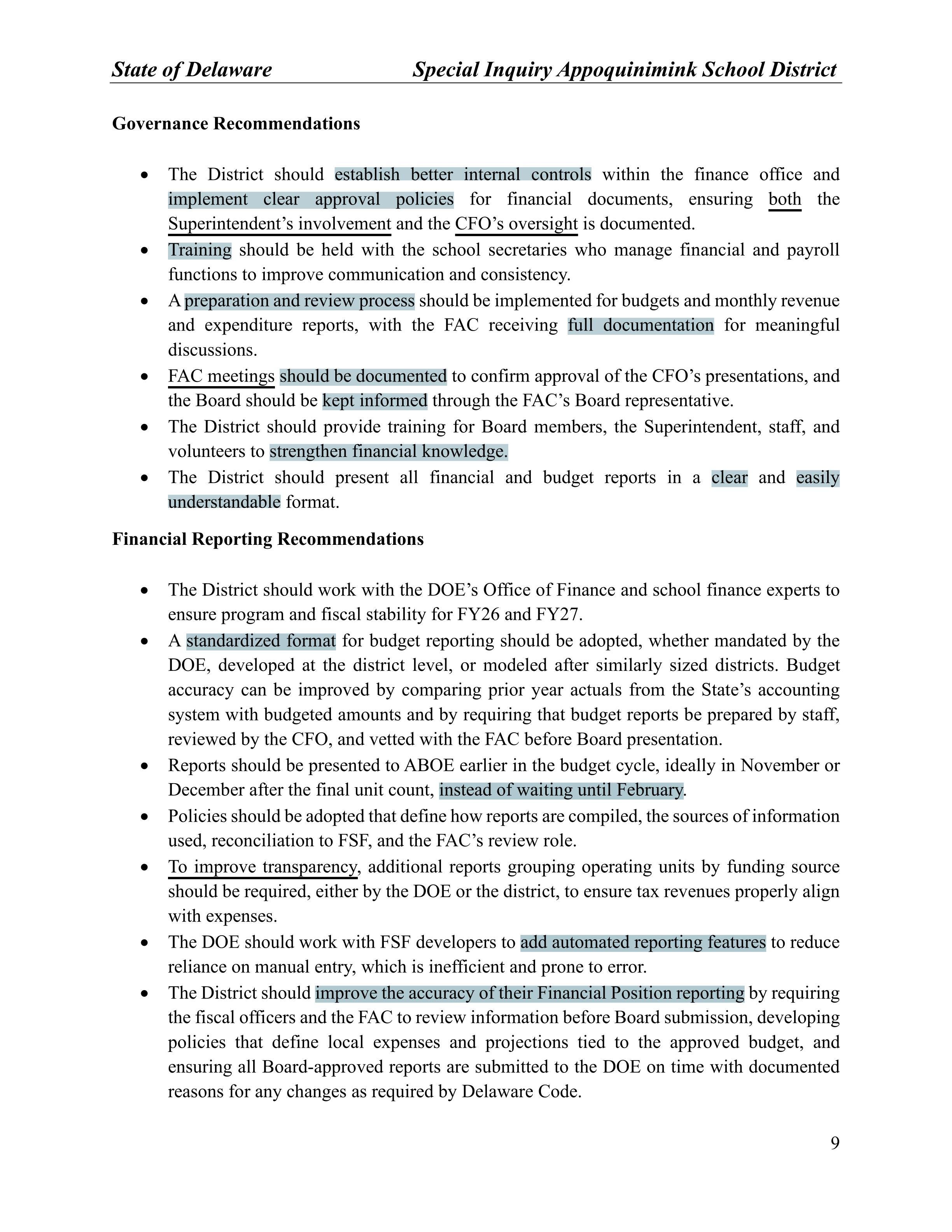 “There is a strong tradition of and need for local control in public education, … However, the lack of standardization across school district fiscal departments may contribute to situations like the one at Appoquinimink evading the view of regulators and auditors until they become crises.”