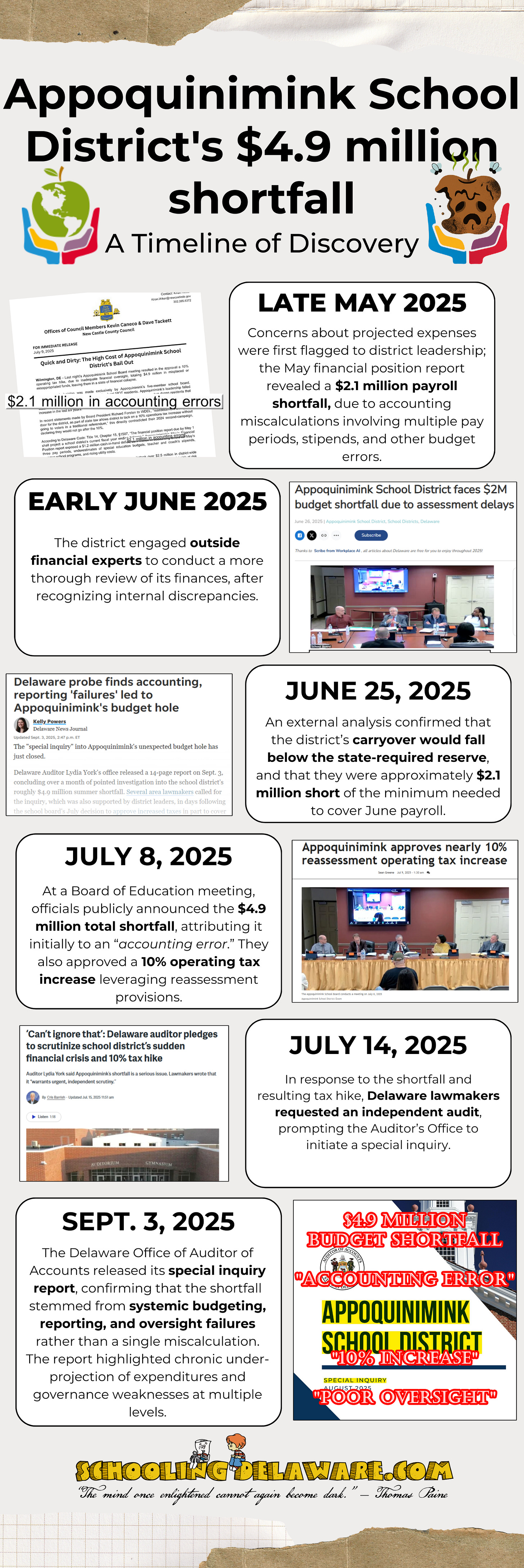 The State Auditor has released a Special Inquiry into the Appoquinimink School District’s $4.9 million budget shortfall—and the findings are deeply concerning.