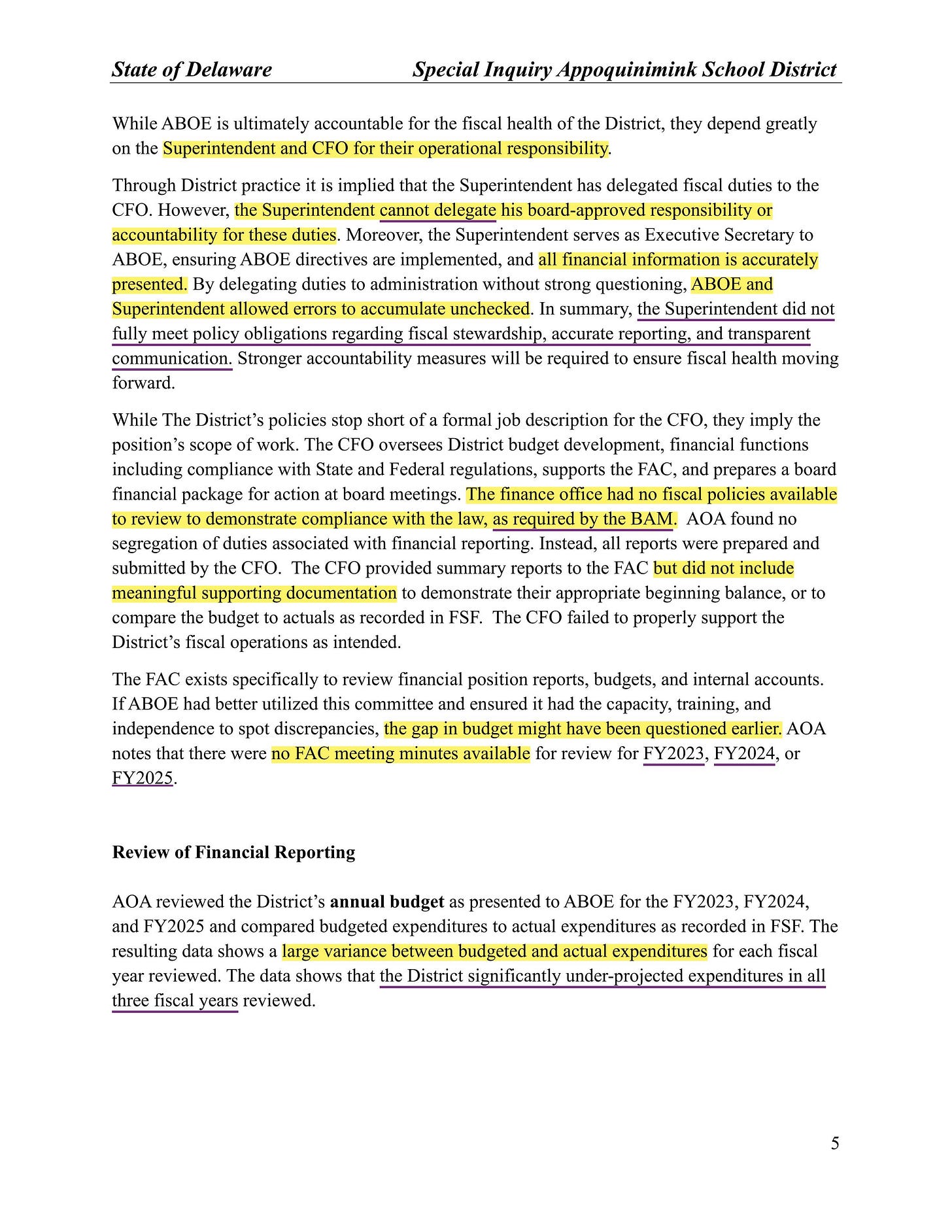 A damning special inquiry reveals fiscal failures in one of Delaware's fastest-growing districts.