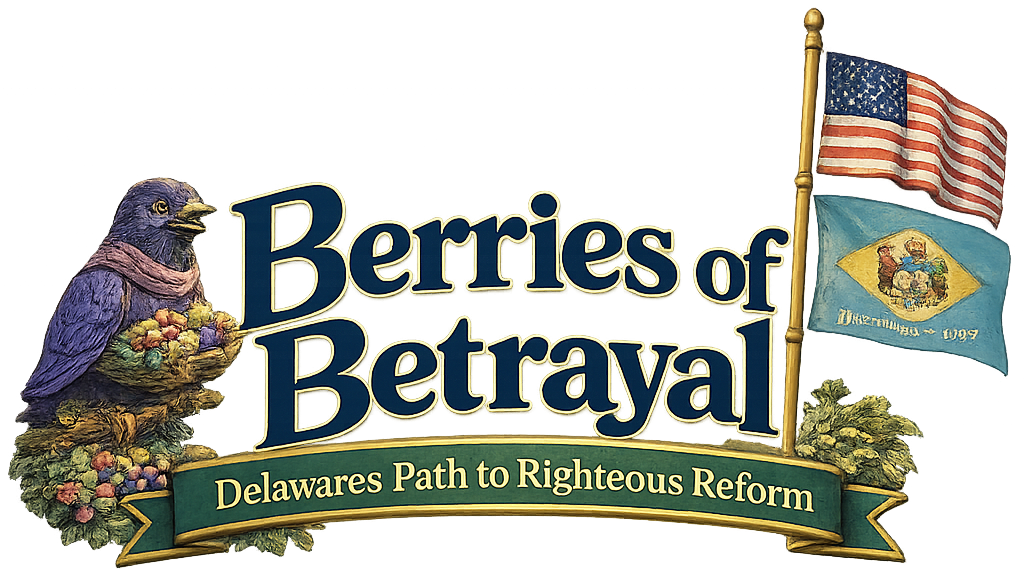 Disclaimer: Berries of Betrayal: Delaware’s Path to Righteous Reform is a work of fiction inspired by real-world events and public records. It is not intended as a factual account, biography, or legal analysis. The sources linked here are provided for adult readers interested in exploring the inspirations behind the story. This page is for informational purposes only and does not constitute legal, political, or professional advice.