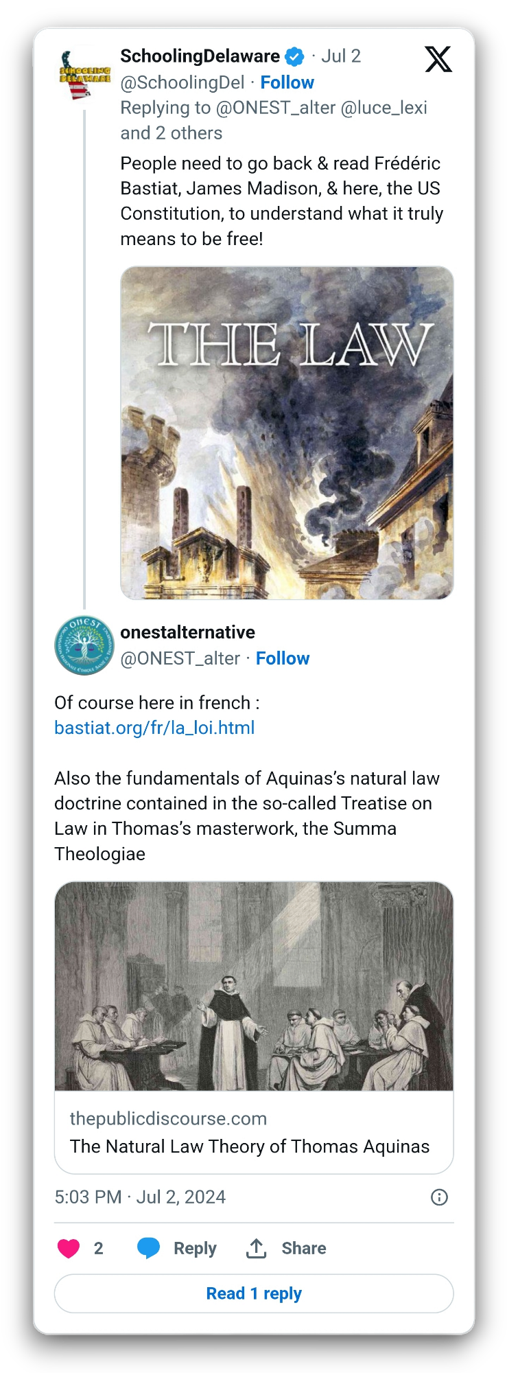 The ideology of Natural Law with Aquinas takes into account man's ability to reason and think rationally. In this we come to understand the "nature" of things and why they do what they do. The Laws of Nature & Nature's God is what our founders referenced in forming the USA -