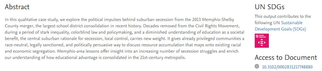 A qualitative research article explores the political and social dynamics after the Memphis–Shelby County merger, including district boundary changes and suburban secession — which reflect how governance shifts don’t necessarily improve equity or outcomes: