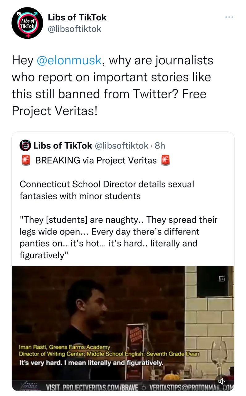 If this video gets supressed by YouTube censorship, it can always be found at: https://www.projectveritas.com/news/explicit-prestigious-connecticut-private-school-educator-details-sexual/