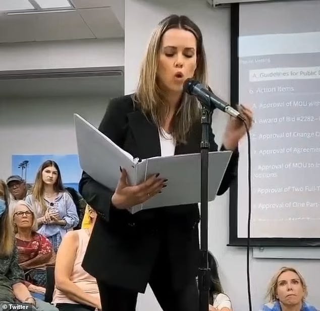 🔥🔥 Brittany Mayer, AKA Rooted Wings on Twitter addresses the school board in opposistion to the “Boo Bash Queerfest Halloween party” - which includes a Drag Show………family friendly, of course.