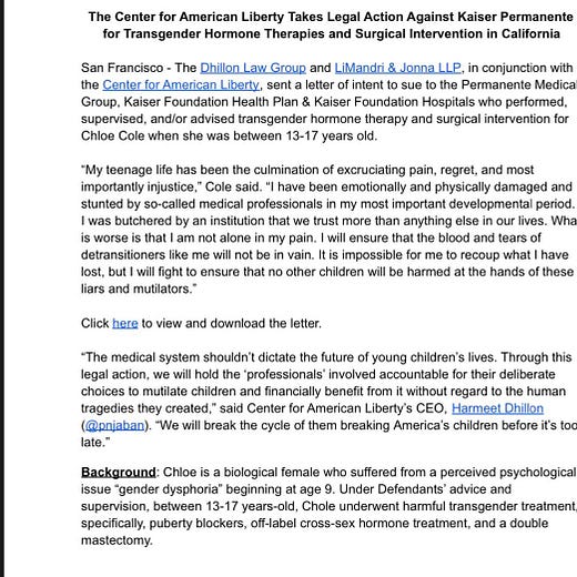 Here Chloe Cole tells her story in front of a Senate Judiciary Committee, and she would now like to tell her story directly to the students and staff at West Chester Area School District…..but they DECLINED! Why would that be? The safety and education of the students should always take precedence.